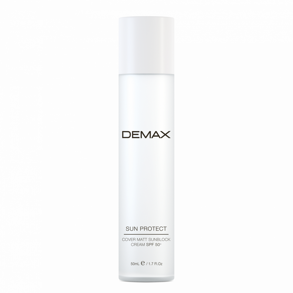 Demax Sun Protect Cover SPF50 Matt Sunblock - солнцезащитный крем с тонером для ежедневного использования и длительного пребывания на солнце. Отлично подойдет для обладателей сухой и обезвоженной тонкой кожи. Маскирует несовершенства кожи, оказывает anti-age действие, надежно защищает кожу от UVA/UVB лучей. Обеспечивает комфортную и длительную защиту от свободных радикалов и солнечных лучей.